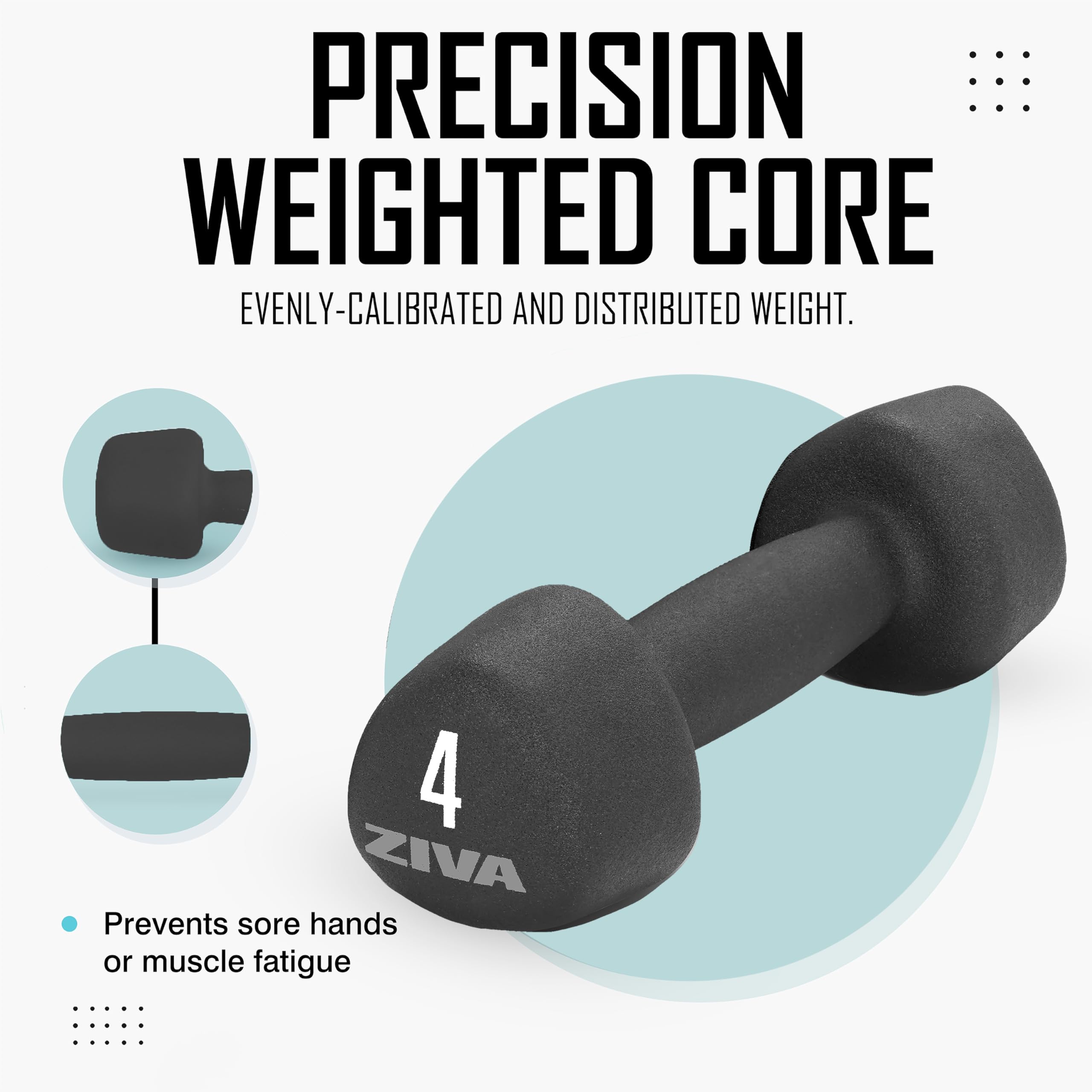 ZIVA Neoprene Tribell Dumbbell Pairs - Set of 2 Hand Weights, Non-Slip Durable Rubber Finish, No-Roll Design for Rigorous Exercise and Strength Training (Avail in 2-20 lb Pairs)