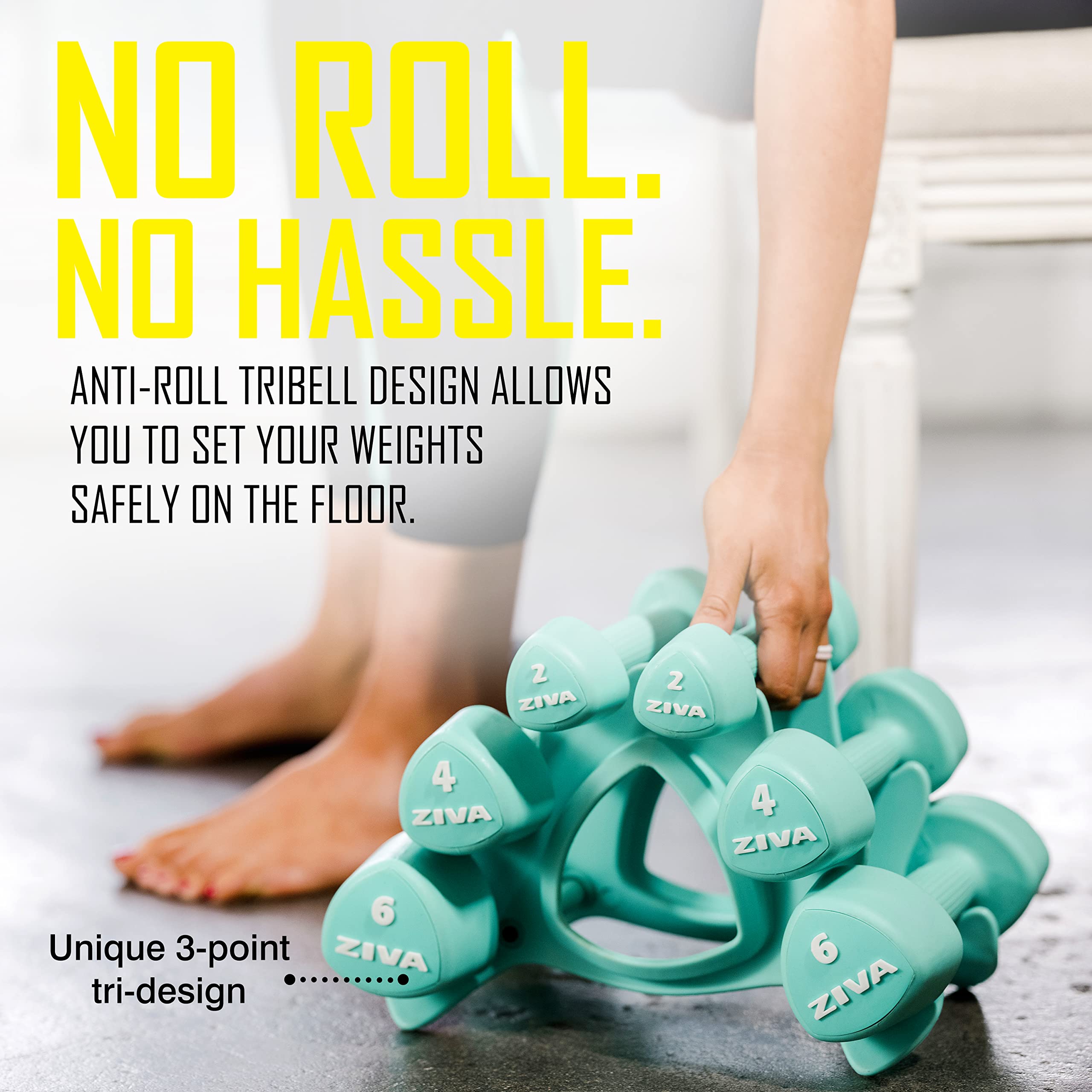 - WEIGHT LIFTING ESSENTIAL: At ZIVA, we recognize that you need high-quality tools both at the gym and at home. These RPU Tribell Studio Dumbbells feature a unique no roll, 3-point tri-design for compactness and stability